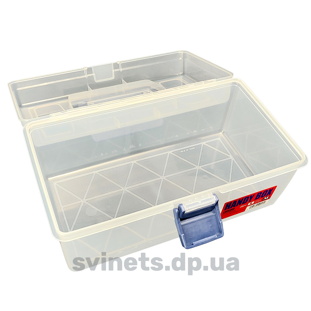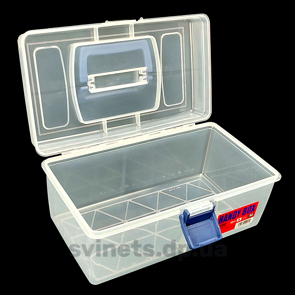 Внутри ящика предусмотрена одна большая секция, предназначенная для размещения габаритных рыболовных принадлежностей. Благодаря такому формату, Meiho Handy Box идеально подходит для хранения катушек, упаковок с приманками, инструментов, кормушек и других крупных элементов. При этом внутри ящика легко поместятся и дополнительные, более компактные боксы, что позволяет использовать его в качестве основного контейнера для перевозки различных рыболовных комплектов.