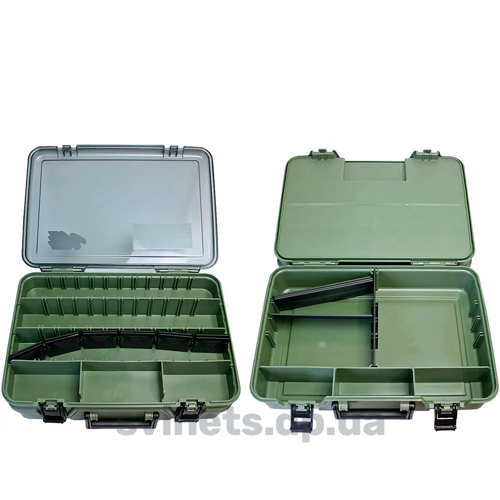 Ящик Meiho VS-3070 от японского производителя - хороший выбор для рыболовов, которые любят держать снасти и приманки в порядке. Благодаря инновационному материалу - сополимеру, удалось уменьшить вес ящика, при этом сохранив ударопрочность и устойчивость к царапинам. Внутреннее пространство разделено на два яруса, внутри которых имеются съемные перегородки, позволяющие самостоятельно регулировать размер ячеек, что дает возможность размещать приманки разных размеров. Прозрачная крышка позволяет, не открывая чемодан, увидеть содержимое. Удобная ручка для транспортировки. Надежные защелки легко открываются и закрываются.