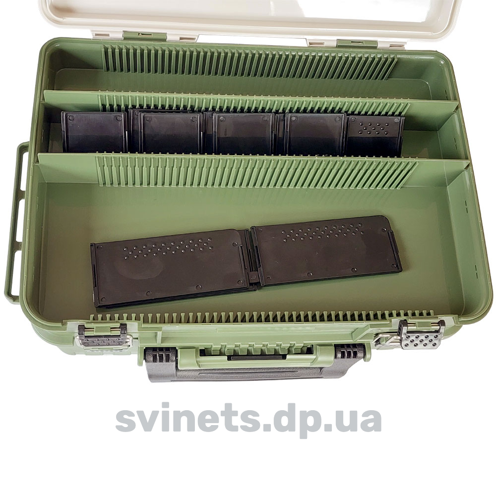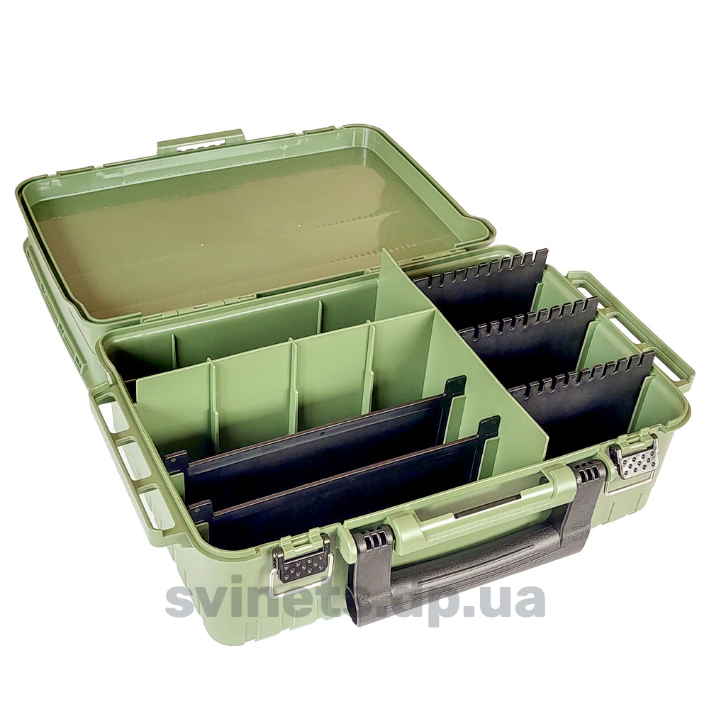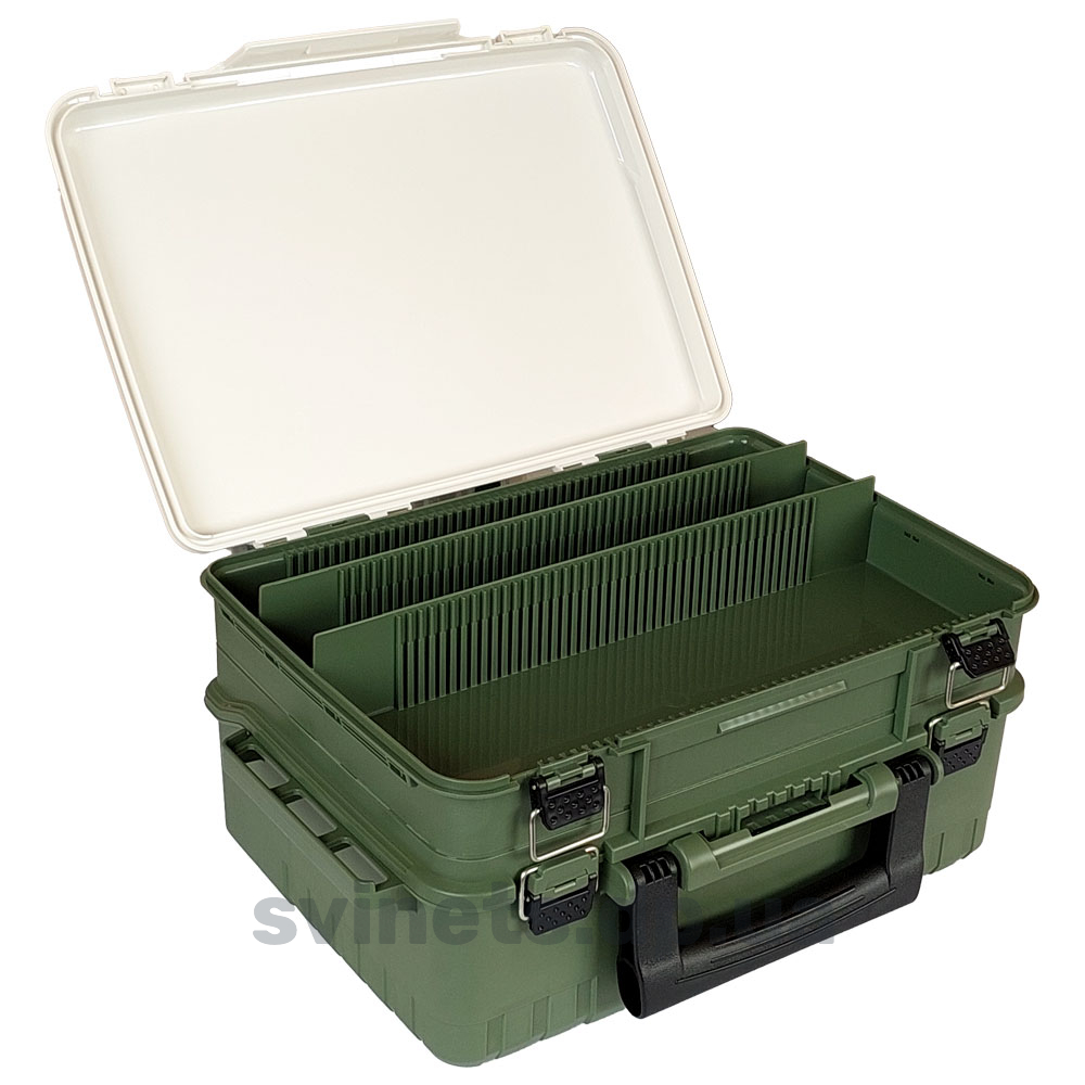 Ящик Meiho Versus VS-3078 представляет собой пластиковой кейс с непрозрачной крышкой и удобной обрезиненной ручкой для переноски. Корпус ящика разделен на две части, соединенные между собой шарнирными петлями. В каждой части внутренние пространства разделены перегородками на меньшие отсеки различных размеров. Основные части кейса и крышка запираются на надежные замки с металлическими скобами, обеспечивающими долгий срок службы. В кейсе можно планомерно разместить массу полезных рыболовных принадлежностей, снастей или приманок любого типа. Данный ящик может полностью удовлетворить потребности в хранении снастей на многих видах рыбалки. При этом все содержимое будет оптимально упорядочено для быстрого и удобного доступа. Применяемые высокотехнологичные пластики выдерживают существенные механические нагрузки и удары, а плотная подгонка деталей препятствует проникновению воды вовнутрь ящика. Ящик Meiho Versus VS-3078 – удачный выбор для любого вида рыбалки.