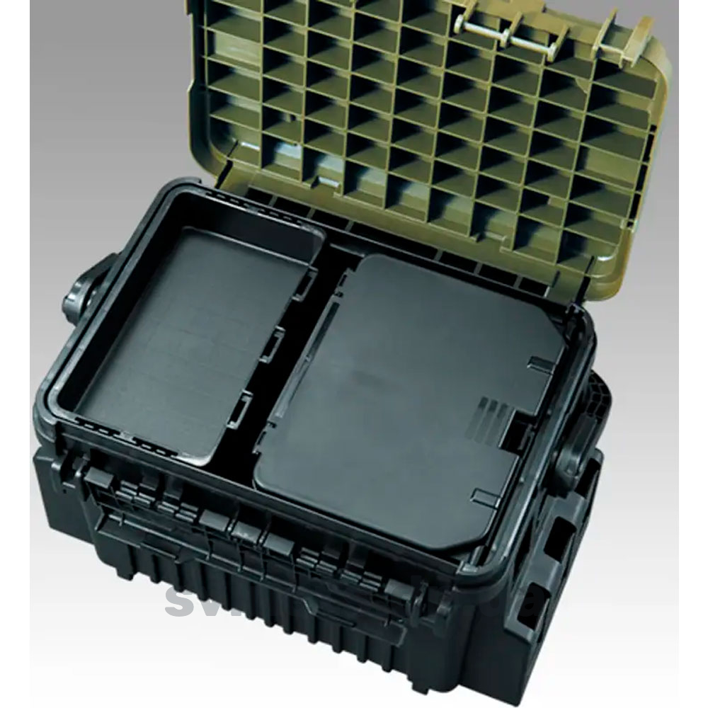Ящик Meiho Versus VS-7090 - очень удобный аксессуар для хранения рыболовных приманок и принадлежностей. Высококачественный пластик, из которого сделан ящик, надёжно противостоит различным ударам и царапинам, а также не подвержен воздействию силикона. Крышка на поворотных петлях оснащена надёжным замком, который легко открывается и закрывается одной рукой, но исключает её самопроизвольное открытие. Специальный фиксатор ручки облегчает переноску за счет препятствования раскачиванию. Внутри располагается съемный лоток. Который может быть закреплен на внешней боковой стороне ящика. Также имеется встроенная коробка, которая откидывается благодаря шарнирному креплению, что позволяет получить доступ к содержимому ящика без ее извлечения. Внутреннее пространство ящика может быть разделено с помощью двух съемных перегородок, которые прилагаются в комплекте. Ящик Meiho Versus VS-7090 благодаря великолепной эргономике, высокому качеству исполнения и материалов, а также долговечности и надежности позволяет существенно дополнить эффективность рыболовного снаряжения.
