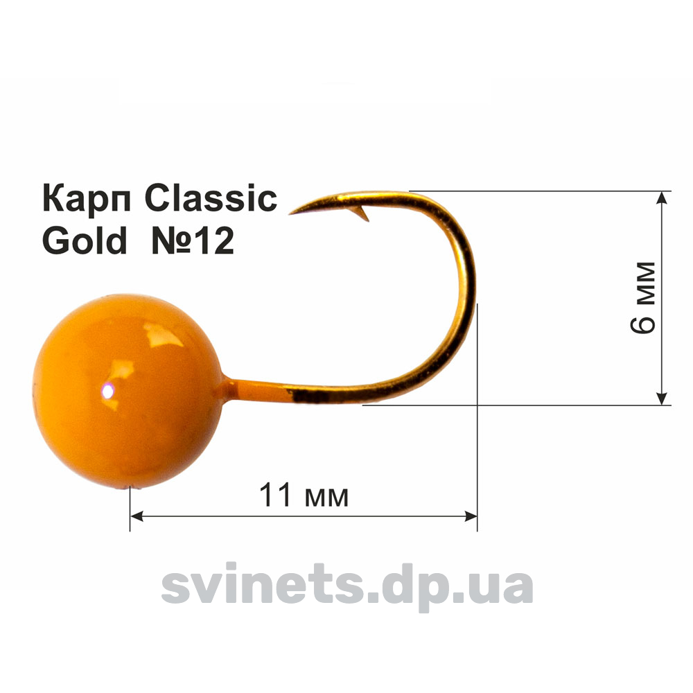 Данная мормышка была разработана нами на основе классического карпового крючка. Крючок "классик" - заводской крючок корейского производства с лазерной заточкой. Цвета крючка - желтый, черный (с покрытием "черный хром"). Тип (вид) свинцовой огрузки - шарик.