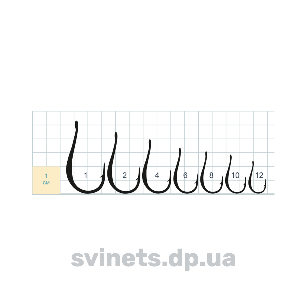 Гачок з широким розплющеними ців'ем, що запобігає сповзання наживки, призначений для лову лонним способом на тварини приманки в водоймах зі спокійною течією. Гачок має високоякісне антикорозійне покриття.