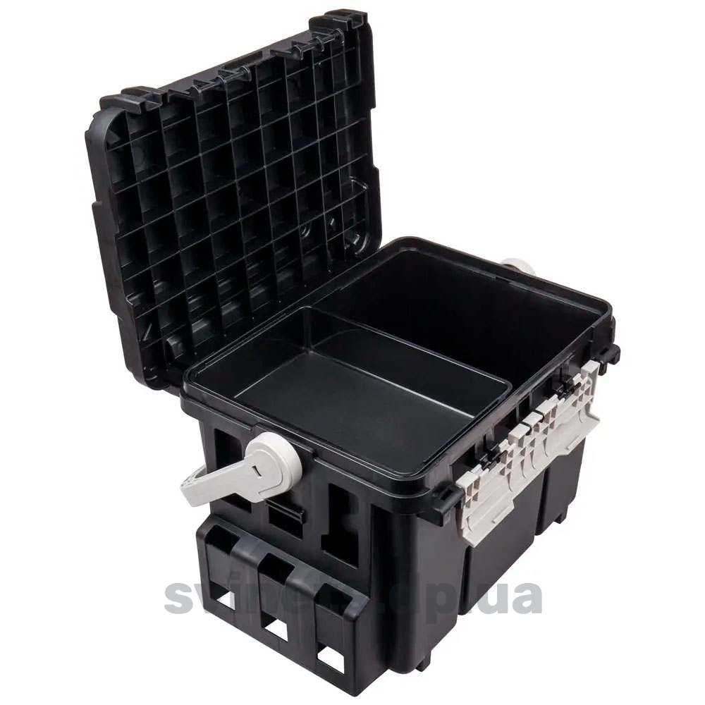 Рибальські скрині серії Bucket Mouth від японського виробника Meiho – гарний вибір для рибалок, які люблять тримати снасті та приманки в порядку. Завдяки інноваційному матеріалу - сополімеру, вдалося зменшити сасу скині і при цьому зберегти удароміцність та стійкість до подряпин. Якщо рибалка вирішить перенести коробку і при цьому не закриє клямку, то продумана система при підйомі ручки заблокує її кришку автоматично і не дозволить нічому випасти. Усередині є перегородки, які можна встановити на власний розсуд, що дозволить вмістити не тільки коробки з дрібними аксесуарами, а й котушку. З боків розташовані кріплення, до яких можна докупити спеціальні підставки під вудилища або просто тримач для пляшки з водою.
