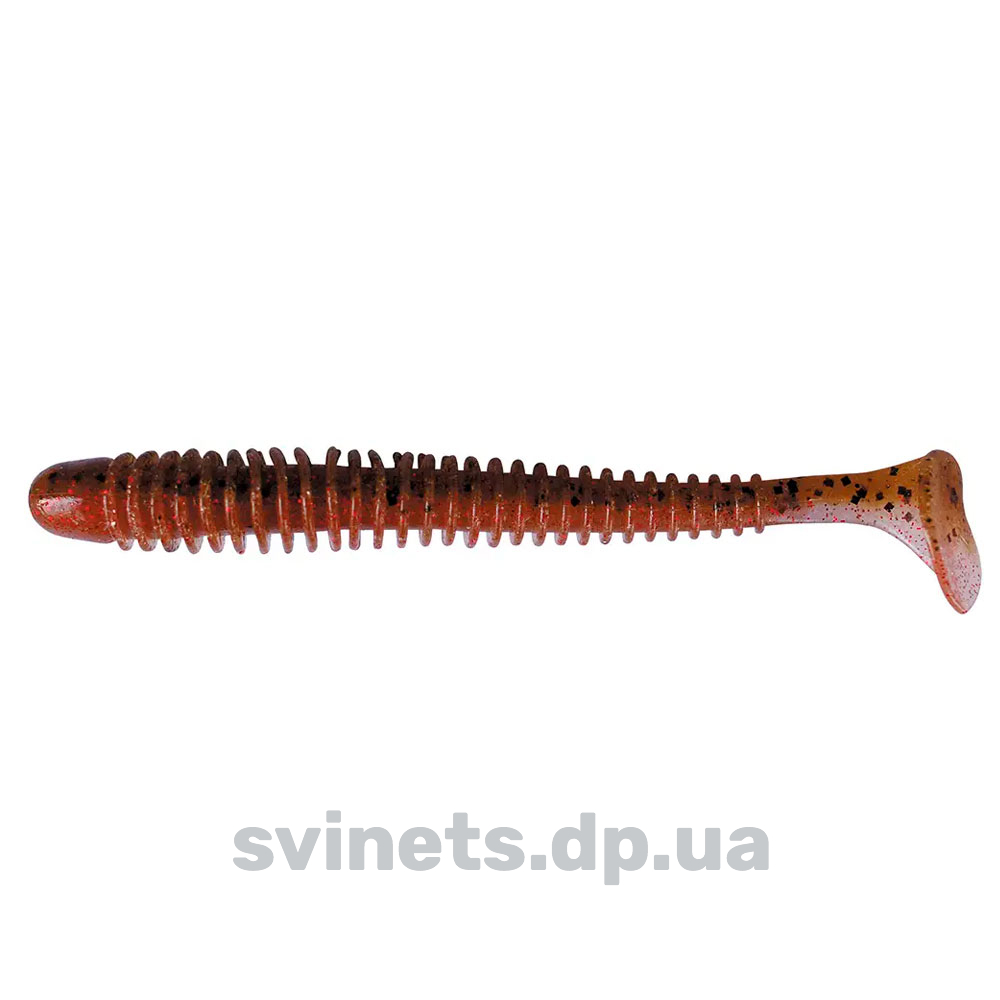 Силікон Keitech Swing Impact являє собою виброхвост з подорвженим ребристим тілом. Тіло приманки має оригінальну форму, перетин відрізняється в передній і задній частини приманки, що надає їй особливу гру. П'ята віброхвоста дуже рухлива і включається в гру при самій повільній проводці. Ребристість на тілі приманки створює додаткові збурення у водному середовищі, що привертають хижака з великої відстані.