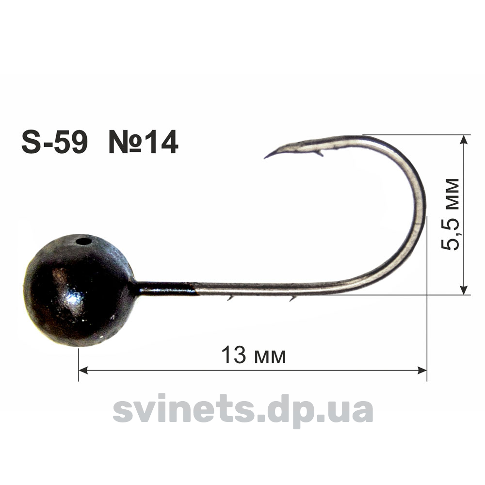 Ця мормишка була розроблена нами на основі гачка S-59. За рахунок двох борідок на цівці відмінно утримує приманку (як штучну, так і натуральну). Форма свинцевого навантаження виконана у вигляді кулі (дробинка). Основний колір – чорний. Додаткові кольори - гранатовий та лимонний. При правильному підборі мормишки на неї охоче клюне і карась, і короп, і лящ, і плітка, і інша риба. Використовується на мирну рибу на бічний ківок, але її можна використовувати в мікроджиг при лові в основному підніжного окуня. При цьому найкраще використовувати максимально дрібні штучні приманки - всілякі черв'яки, слаги, твістери, віброхвости.