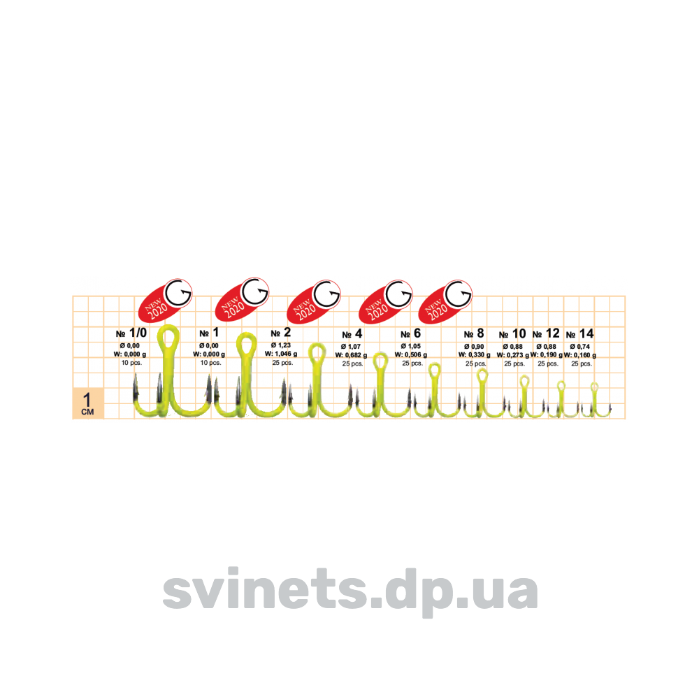 Класичний трійник ST-36 з полімерним покриттям, що відображає ультрафіолетове випромінювання і має власний колір яскравий шартрез. Має унікально гостре жало з заточкою The Best Needle Point. Ефект відображення максимально ефективний на глибинах до 7-ми метрів. Має високоякісне антикорозійне полімерне покриття SHuv.