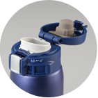 На кришці розташована кнопка, яка інтуїтивно намацується великим пальцем, таким чином відкривати та закривати термокружку можна однією рукою. Блокатор – спеціальний замок не дає випадково відкритися під час транспортування.