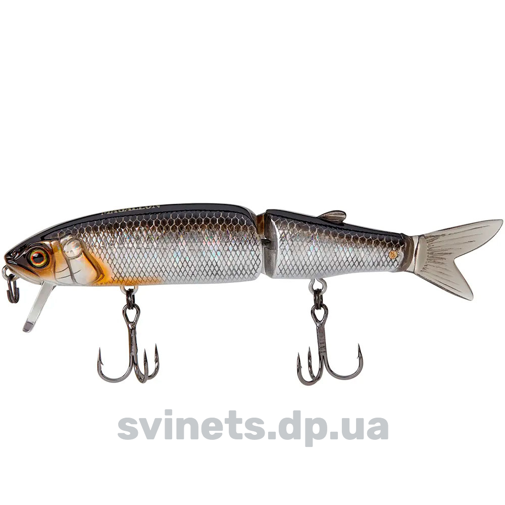 Jackall Magallon - двоскладовий воблер з оригінальним дизайном. У хвостовій частині розташовується м'який, але стійкий до щучих зубів, хвостик, який при проводці додатково спокушає рибу. Навіть при малій амплітуді ривків спінінга здійснює розмашисті розвороти і кульбіти у воді, спокушаючи навіть неактивного хижака.